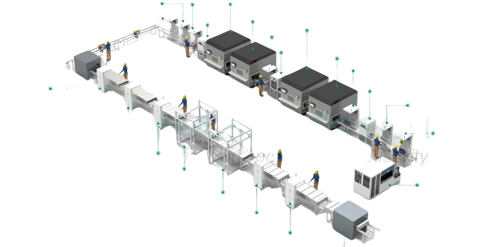 The Pack Line integrates final assembly, enclosure installation, and testing for scalable battery production.